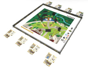 This is the second edition of Catacombs & Castles featuring a large 24×24″ (61x61cm) neoprene playmat instead of a game board. This game also provides extra cards so that the heroes from Castles can be used in Catacombs 3E.